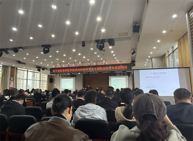 专题培训聚焦党务工作重点难点,课程设置兼具政治性、专业性与实践性。培训期间,南宁市委市直机关工委副书记蓝迅围绕 “铸牢中华民族共同体意识” 作专题授课,深刻阐释了民族工作与党建工作深度融合的实践路径;市委市直机关工委组织部部长、党建工作基层指导部分别就 “基层党组织设置与换届选举流程”“党的组织生活规范与党员发展工作” 开展实操教学,通过政策解读、案例分析等方式,理清了基层党务工作的标准流程与关键节点;自治区党校教授则以《习近平谈治国理政》第五卷为核心,系统宣讲新时代党的创新理论,为党务干部补足精神之钙、夯实思想之基。