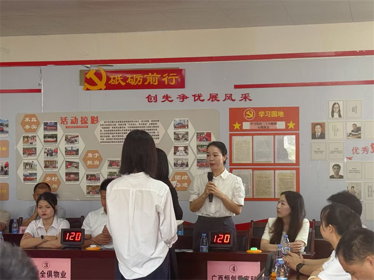 协会党总支部积极响应号召,选派下辖广西恒创爱家科技集团有限公司支部组建2人参赛,协会党总支书记覃桂萍作为此次竞赛仲裁组成员,确保竞赛的公平、公正进行。恒创与来自住建行业党组织的10支劲旅同台竞技,各队实力强劲,竞争尤为激烈。